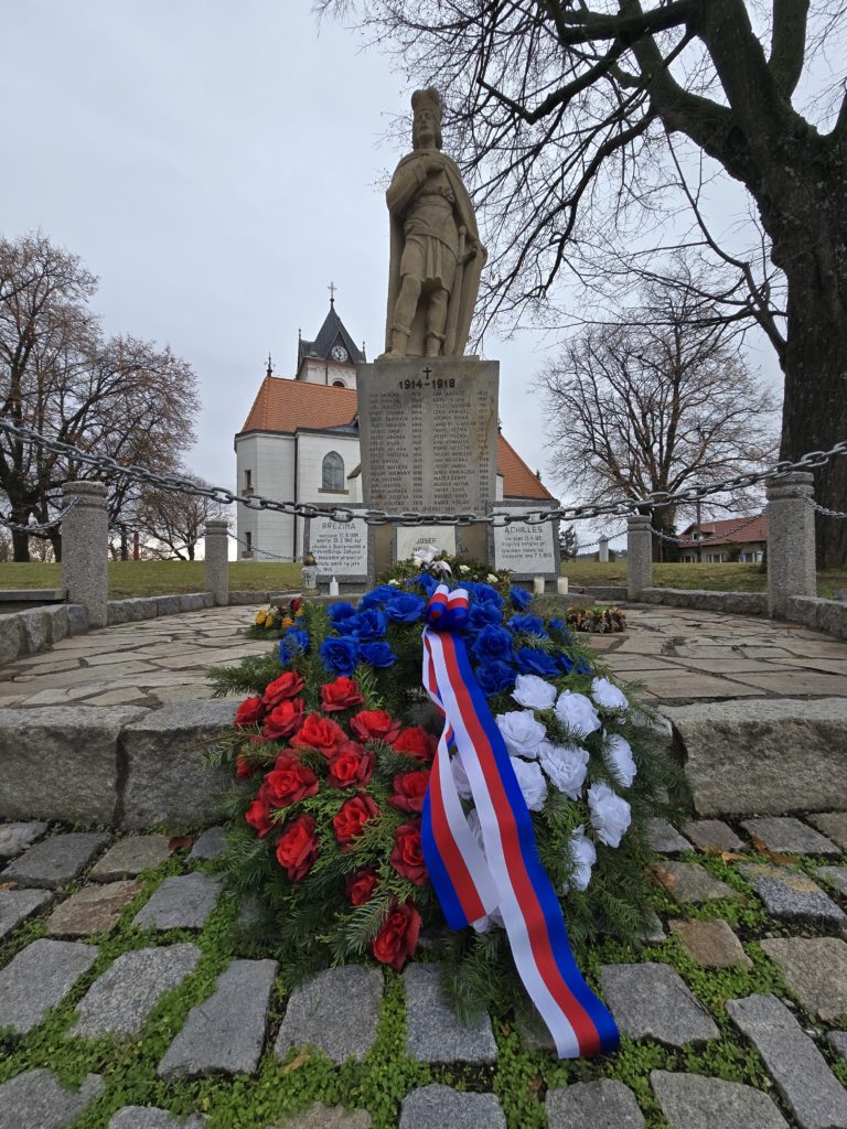 Po mši svaté proběhlo slavnostní položení věnce u památníku, který se nachází na náměstí pod sochou sv. Václava. Věnec za městys Višňové položil starosta Vladimír Korek. Událost proběhla v duchu úcty a poděkování všem, kteří se zasloužili o svobodu a mír