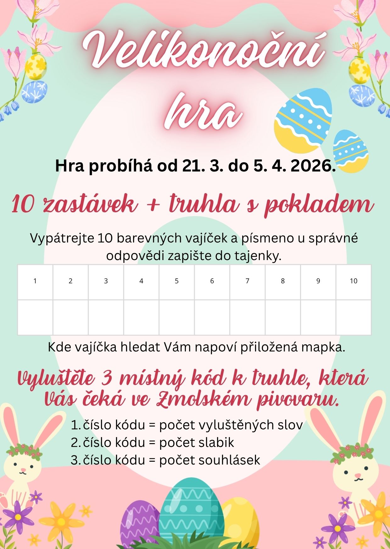 března do 5. dubna. Na trase je umístěných 10 barevných vajíček, pod